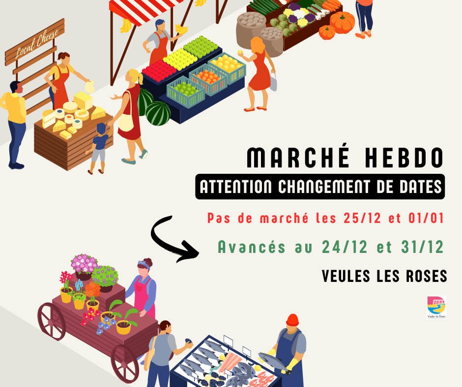 Les marchés des mercredis 25 décembre et 1er janvier sont avancés aux mardis 24 et 31 décembre.